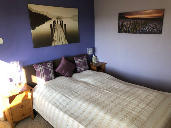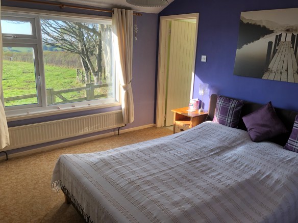 The en suite bedroom is located at the opposite end of the cottage from the other two bedrooms and accessed by going down a single step through a small hallway from the kitchen. This room has a king size bed, wardrobe and dressing table. It is at the back of the cottage with wonderful views out over the Aune Valley (see the picture at the top the page).